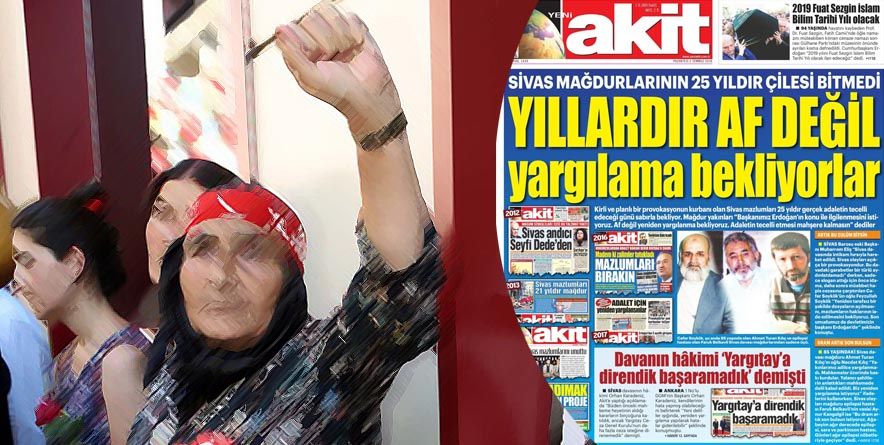 Sözün ve insanlığın bittiği yerde akit yine İTliğini gösterdi ve 2 Temmuz 1993 yılında Sivas Madımak Otelinde gerçekleşen katlimada yer alan katilleri mağdur olarak lanse edip onlar için adalet istedi… Her zaman ki gibi dış küçlerin işi bu diyerek sıyrılma…