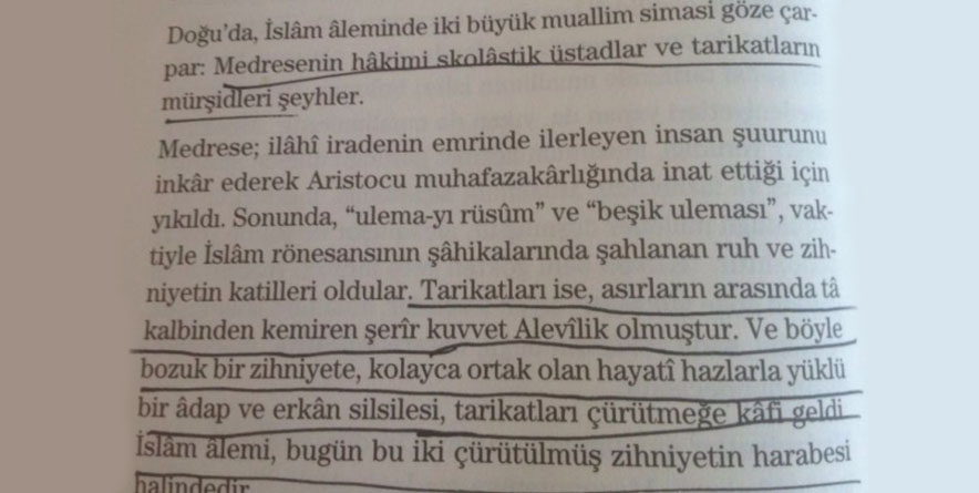 Milli Eğitim Bakanlığı tarafından, tüm öğretmenlerin seminer döneminde incelemesi ve tartışması istenen kitaplar listesinde tek zorunlu kılınan ve birinci sıradaki Türkiye’de Maarif Davası adlı kitap, Alevilik inancına “Çürümüş” diye hakaret ediyor, liselerde karma eğitimin kaldırılması gerektiğini öneriyor. Eğitimsen Genel Başkanı Kamuran Karaca…