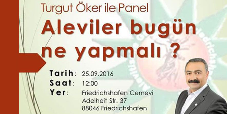 25 Eylül Pazar günü saat 12.00’de Friedrichshafen Alevi Kültür Merkezi ve Cemevi’ndeki panele katılım ücretsiz olacak. Panele, Avrupa Alevi Birlikleri Konfederasyonu (AABF) Onursal Başkanı ve eski milletvekili Turgut Öker konuşmacı olarak katılıyor. Friedrichshafen Alevi Kültür Merkezi ve Cemevi Başkanı Gönül…